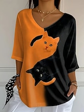 More information about Halloween Women's Blouse Cat Daily Casual 3/4 Length Sleeve V Neck Regular Tops Daily Holiday Print Orange Summer Spring Fall