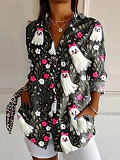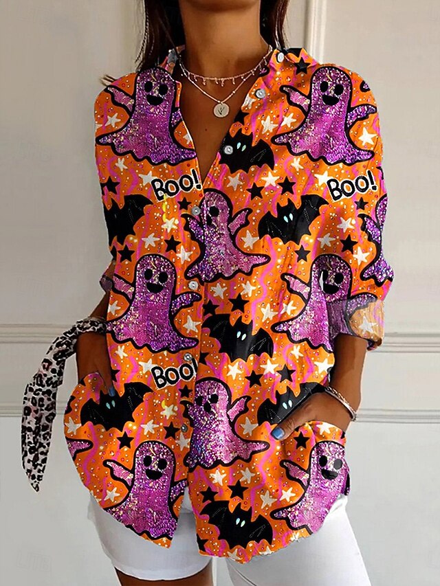 Why Choose Halloween Women's Shirt Button Down Tunic Shirt Collar Long Sleeve Bat Graphic Vintage Casual Regular Tops Work Daily s Print Black Pink Orange Gray Spring Fall?