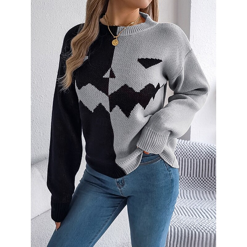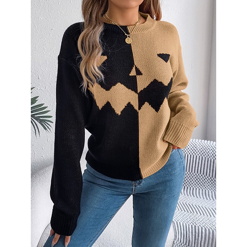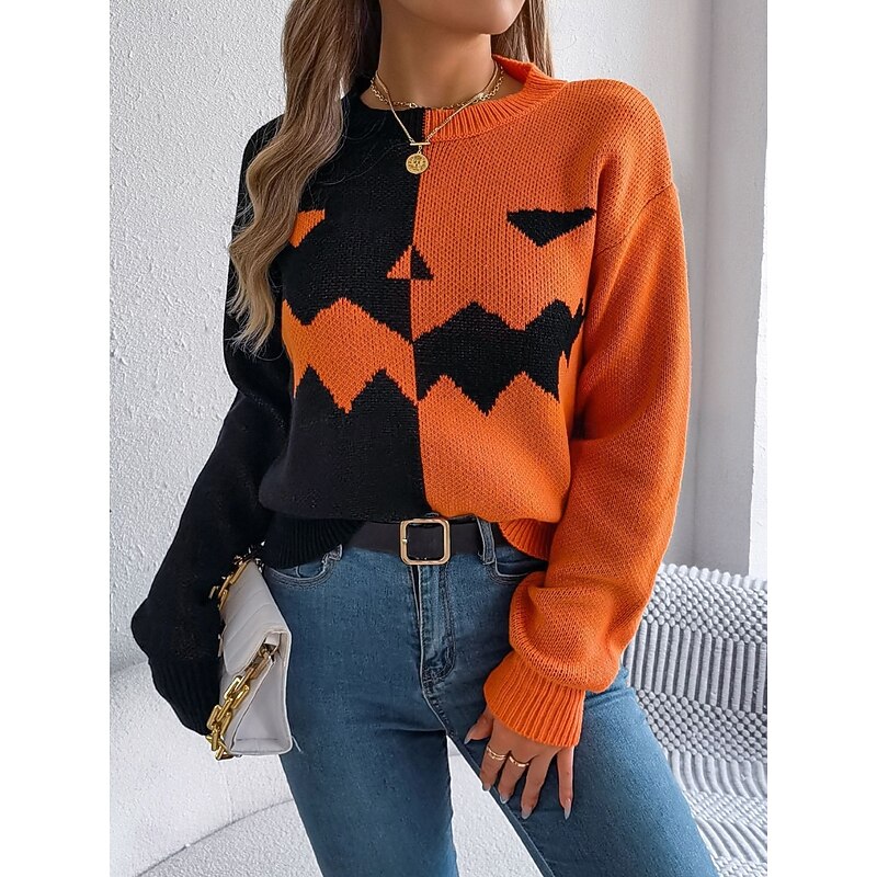 Why Choose Halloween Women's Sweater Pumpkin Casual gentle Graphic Ribbed Crew Neck Knitted Long Sleeve Regular Tops Knit Orange Khaki Fall Winter Prefall?