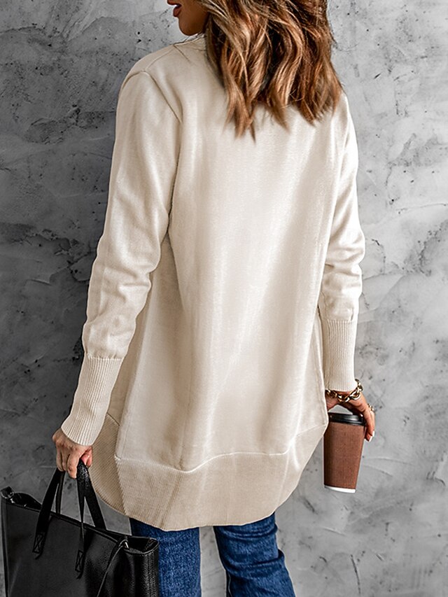 More information about Women's Cardigan Fashion Work Casual Solid Color Shirt Collar Patchwork Long Sleeve Regular Tops Knit Formal Work Black White Fall Winter