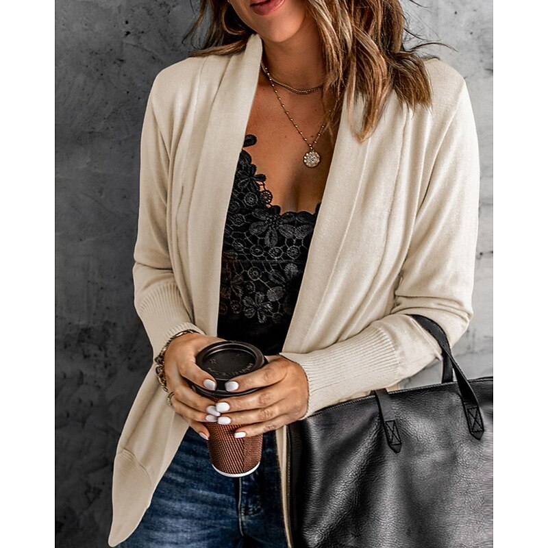 Women's Cardigan Fashion Work Casual Solid Color Shirt Collar Patchwork Long Sleeve Regular Tops Knit Formal Work Black White Fall Winter