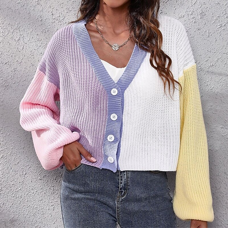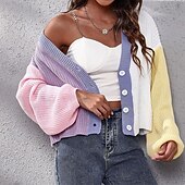 This Women's Cardigan Casual Color Block Chunky V Neck Knitted Long Sleeve Crop Tops Knit Daily Holiday Going out Pink Blue Fall Winter combines elegant design with practical functionality. Every detail has been carefully considered to ensure you get the best possible experience. The magnificent construction means this product will serve you well for years to come.