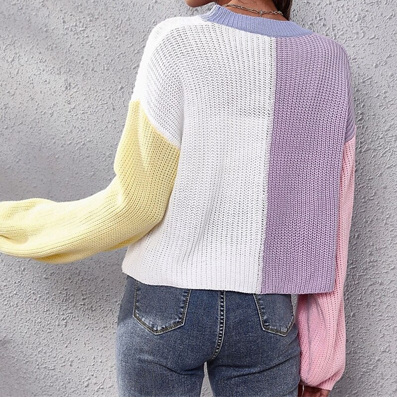 Why Choose Women's Cardigan Casual Color Block Chunky V Neck Knitted Long Sleeve Crop Tops Knit Daily Holiday Going out Pink Blue Fall Winter?