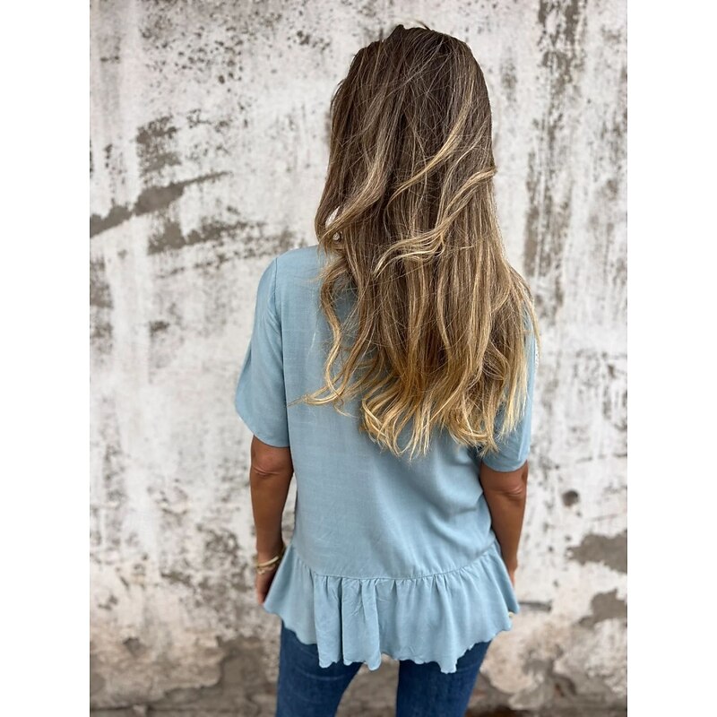 Highlights - Stay cool and pleasant in this trendy short sleeve cotton linen shirt - Perfect for daily wear during the summer season - Features a fashionable ruffle design on the crew neckline - Versatile solid color pattern that pairs easily with any bottoms - Designed specifically for women's casual fashionistas
