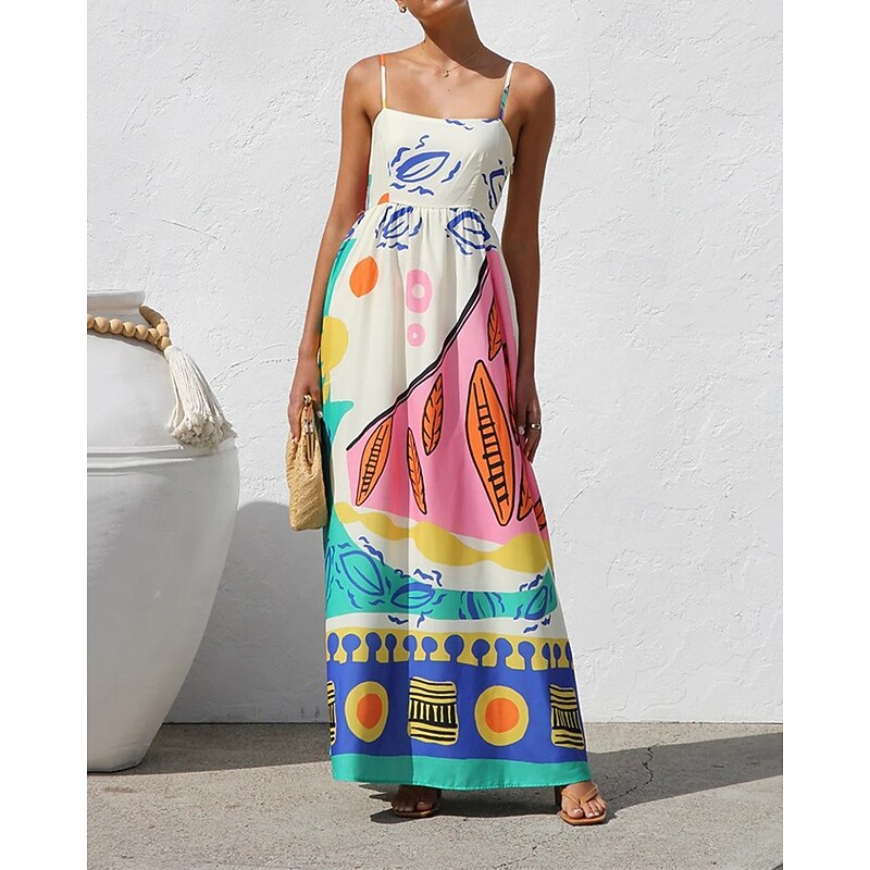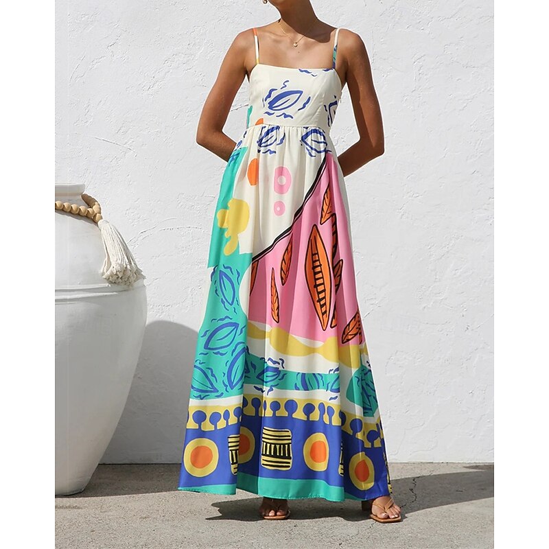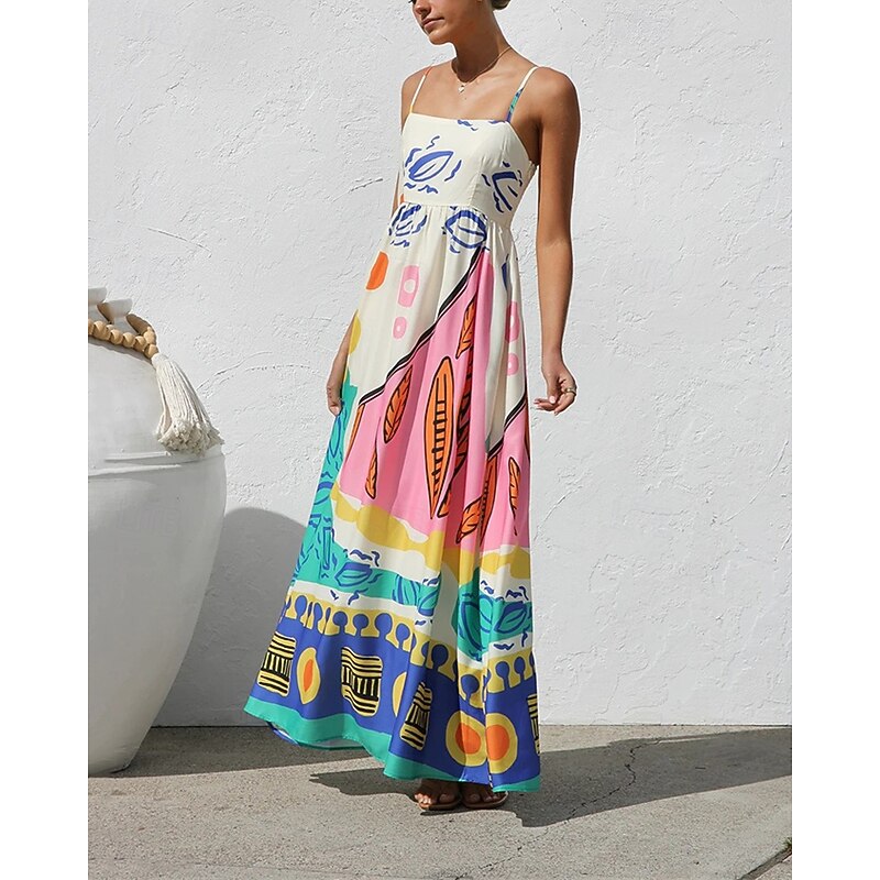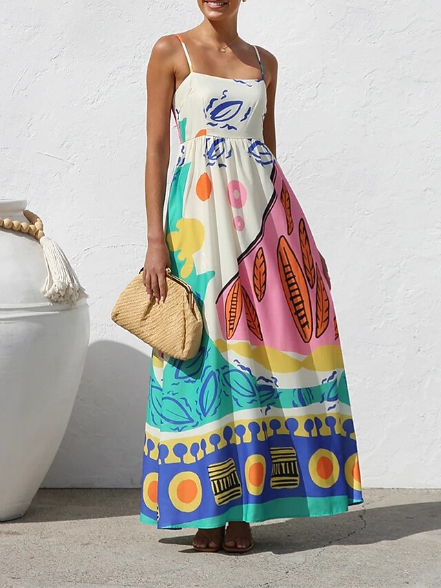 Highlights - Stay cool and chic during the summer season with this polyester sleeveless dress for women - Perfect for dates or parties, this casual dress comes in a trendy slip dress design - Made with soft cotton linen fabric and featuring a color block pattern and print design - The spaghetti strap neckline adds a touch of elegance to this versatile piece