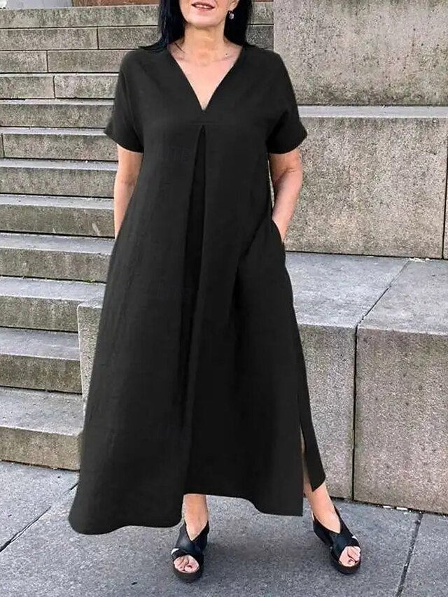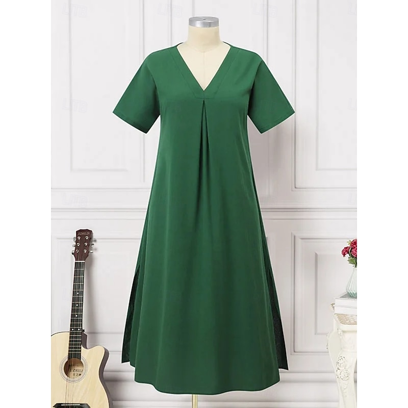 This Women's Maxi Dress Cotton Linen Dresses Casual Dress Swing Dress Cotton Maxi Dress Basic Casual Vacation Daily Regular Fit Plain Short Sleeve V Neck Black Green Summer combines elegant design with practical functionality. Every detail has been carefully considered to ensure you get the top possible experience. The first-class construction means this product will serve you well for years to come.