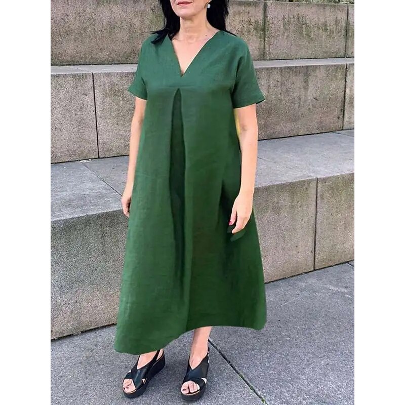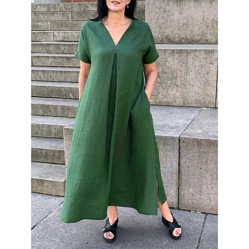 Why Choose Women's Maxi Dress Cotton Linen Dresses Casual Dress Swing Dress Cotton Maxi Dress Basic Casual Vacation Daily Regular Fit Plain Short Sleeve V Neck Black Green Summer?