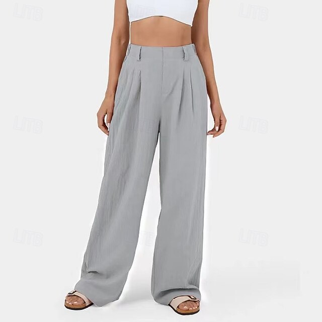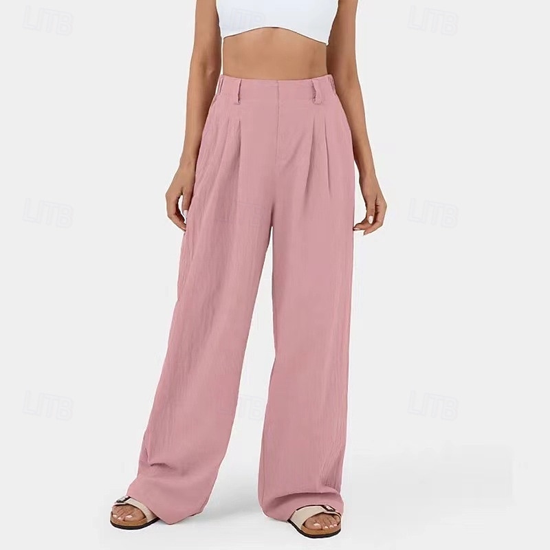 More information about Women's Cotton Linen Pants Palazzo Pants Fashion Streetwear Comfort Full Length Mid Waist Plain Pleated Pocket Comfy Outdoor cozy Street Daily Wear Going out Dark Brown Black Ivory Yellow