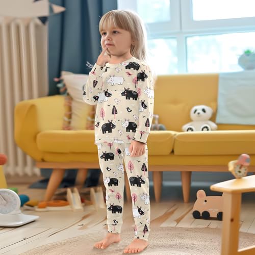 Pajama Sets Long Sleeve Cute Rhinos Birds Trees Pattern gentle Comfy Sleepwear 2 Piece PJS 3-8T