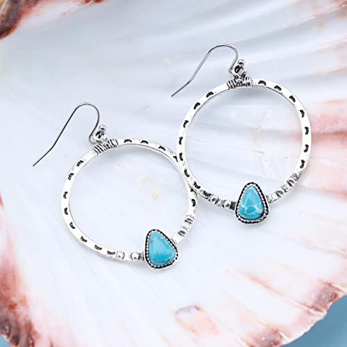 Why Choose Boho Turquoise Circle Dangle Earrings Silver Large Circle Drop Earrings Turquoise Bead Dangling Earrings Geometric Circular Hoop Hook Earrings for Women?