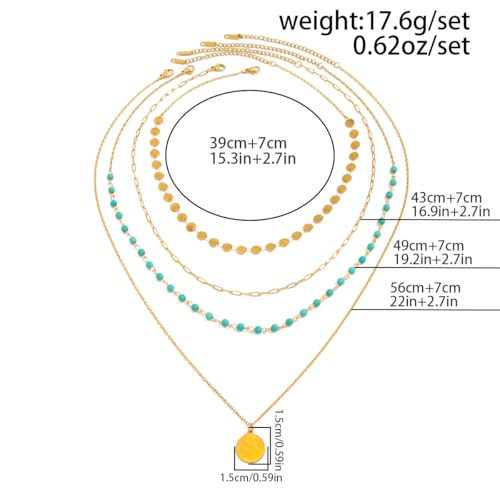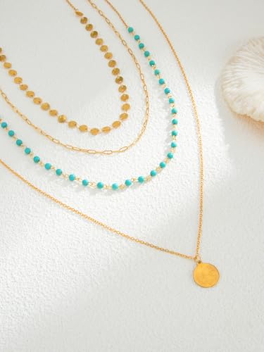 Layered Gold Necklaces for Women Stack Boho Turquoise Western Coin Pendant Necklace Country Concert Beach Fashion Jewelry Gift