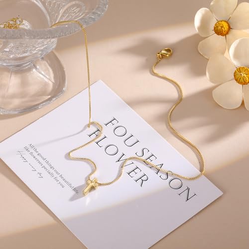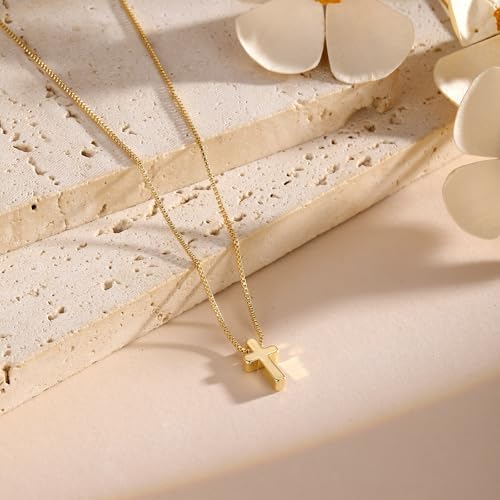 Cross Necklace for Women Trendy - Dainty 14K Real Gold Plated Minimalist Cz Cross Necklace Non Tarnish Waterproof Trendy Cute elementary Small Necklaces Easter Christian Religious Faith Jewelry Gifts