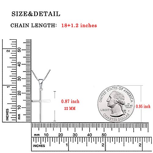 More information about YL Womens Plain Cross Necklace 5A+ Birthstone, Solid 925 Sterling Silver 18K White Gold Plated Pendant Crucifix Jewelry Christmas Gifts Adjustable Box Chain 18"+1.2"