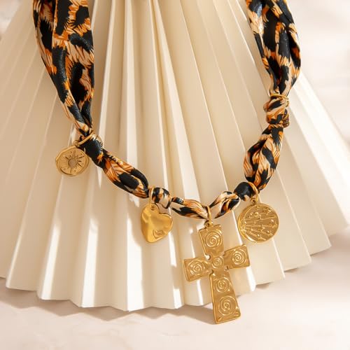 Why Choose Scarf Necklace with Charm, Bandana Necklace with Gold Dainty Pendants - Chunky Cross, Heart, Flower, Conch, Boot, Cowboy Hat, Boho Beach Vintage Scarf Necklaces, chic Jewelry Gift?