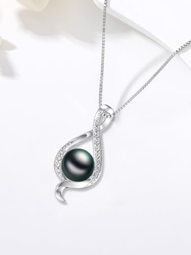 in-demand ! Tahitian Black Pearl Necklace 18K White Gold Plated 925 Sterling Silver AAA+ Handpicked Pearl Pendant Jewelry Gift for Mom Women
