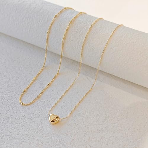 OGD Heart Necklace for Women, 14K Gold Plated Layered Tiny Puffy Heart Pendant Necklace Cute Chunky Heart Choker Necklace plain Gold Necklace Jewelry for Women Trendy Gift