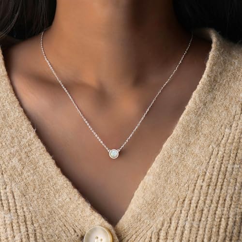 Material: Sterling SilverMetal type: BaseClasp type: BallChain type: BallsGem type: No GemstoneNECKLACE MEANING: card sayingTo my Daughter on your pregnancy,Pregnancy is the only time in life when you'll fall in love with someone you haven't met...I know this for a fact... You're going to be an amazing mama! The dainty tiny opal coin charm necklace represent the love bond between you and you loved ones like the essential relationship between the strong, and iridescent opal of the inner stone and the opal created withinMATERIALS and SIZE: made of excellent 925 sterling silver, with multi layers white gold polish plated, it will not easily be tarnished neither made your skin turn green nor red, nickel free and hypoallergenic. Opal diameter is 6mm. Tiny size for every day wore (please attention), Chain length is 42cm plus 8cm extender which can be adjust from 16 to 20READY TO BE GIFTED: Each piece of jewelry we are packaged with a gift wrapping, you will get a elegant gift box with a matching gift bag, a satin pouch for necklace storage, a silver polishing cloth, a lovely gift writing card, a card with jewelry care instruction. Besides, we are also prepared a small pocket PHOTO FRAME in each package to record the most precious memories with the most important person in your lifeHANDCRAFED WITH CARE AND LOVE: Every handcrafed jewerly we are made of premium materials with a dainty loook, lovely care. Simple and elegant, a perfect gift ideas for women, grandmother, mother, daughter, best friends, wife, Aunt, Niece, granddaughter. Great sentimental gift on Mother's Day, Birthday, Christmas,Graduations, Ball, Valentines,Family Celebrations,Christmas,Holiday,ThanksgivingTAKE A GOOD CARE: Every piece jewelry in my store is handmade of love and care, Any problems or questions don't hesitate to get in touch, we will get back to you asap Perfect for everyday use. superior materials and excellent craftsmanship ensure long-lasting durability.