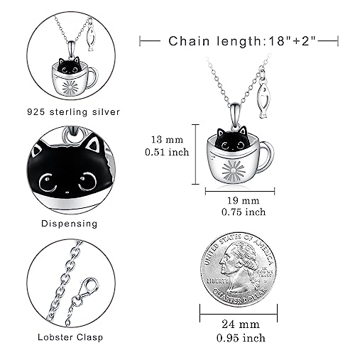 • DESIGN CONCEPT: A cute and mischievous little black cat is hiding in a cup. The cup cat necklace are specially designed for those who love cat. The exquisite polished necklaces are uncomplicated and elegant. Suitable for home and office for everyday wear. This is a cute black cat gift for women