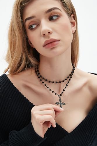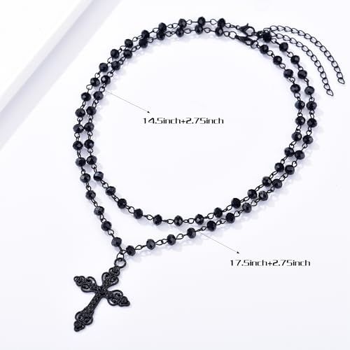 • Black cross necklae they're actually two separate necklaces. The black beads shine prettily in the light. The cross is large, detailed, and ornate. ideal accessories for different costumes and for the festive spirit of to make the party more exciting and fun.