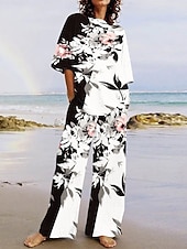 More information about Women's Active Vacation Pants Sets Half Sleeve Crew Neck Ombre Floral Print Casual Daily Black White Summer Regular Fit