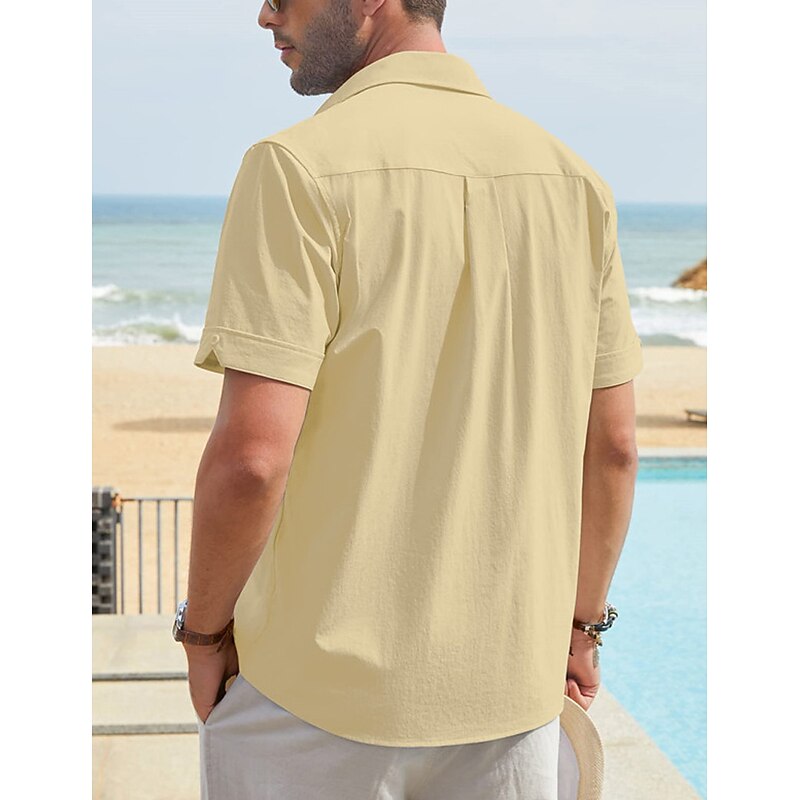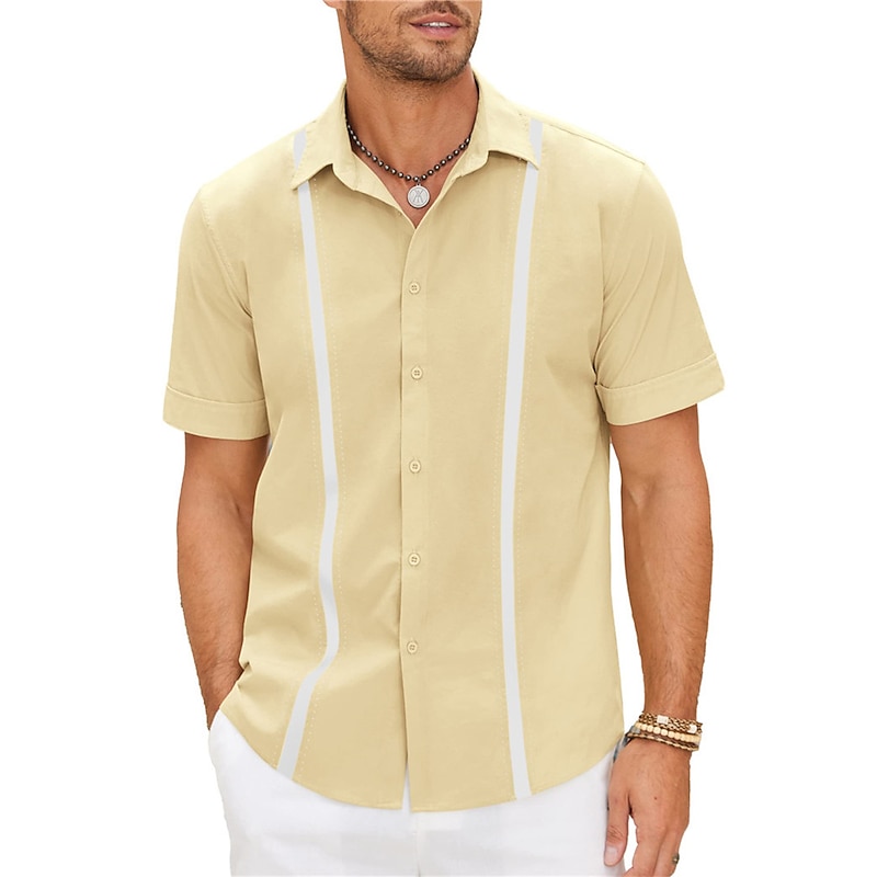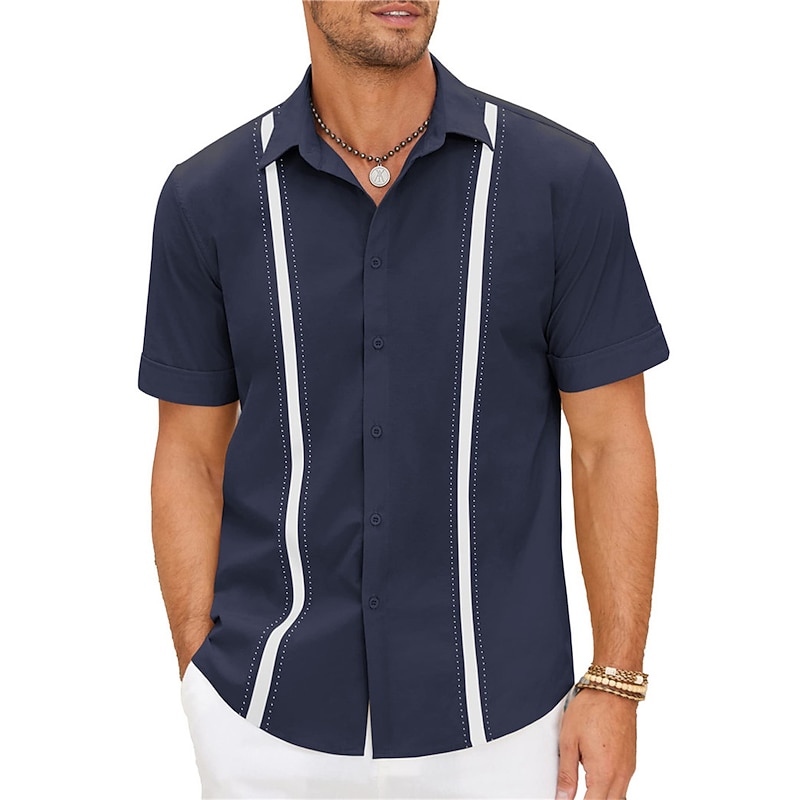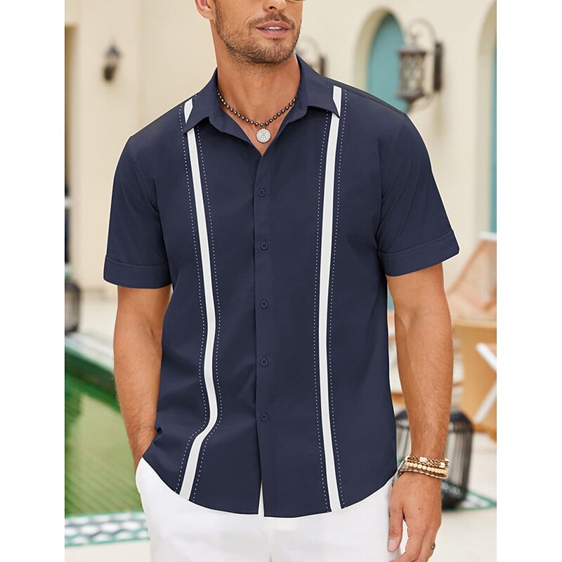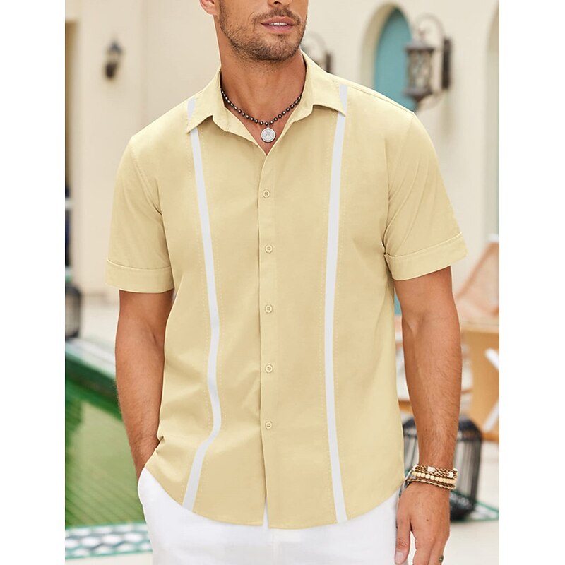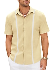 in-demand ! Men's Shirt Linen Shirt Guayabera Shirt Summer Shirt Beach Shirt Button Up Shirt Color Block Vacation Casual Navy Blue Blue Khaki Short Sleeve Turndown Summer Clothing Apparel