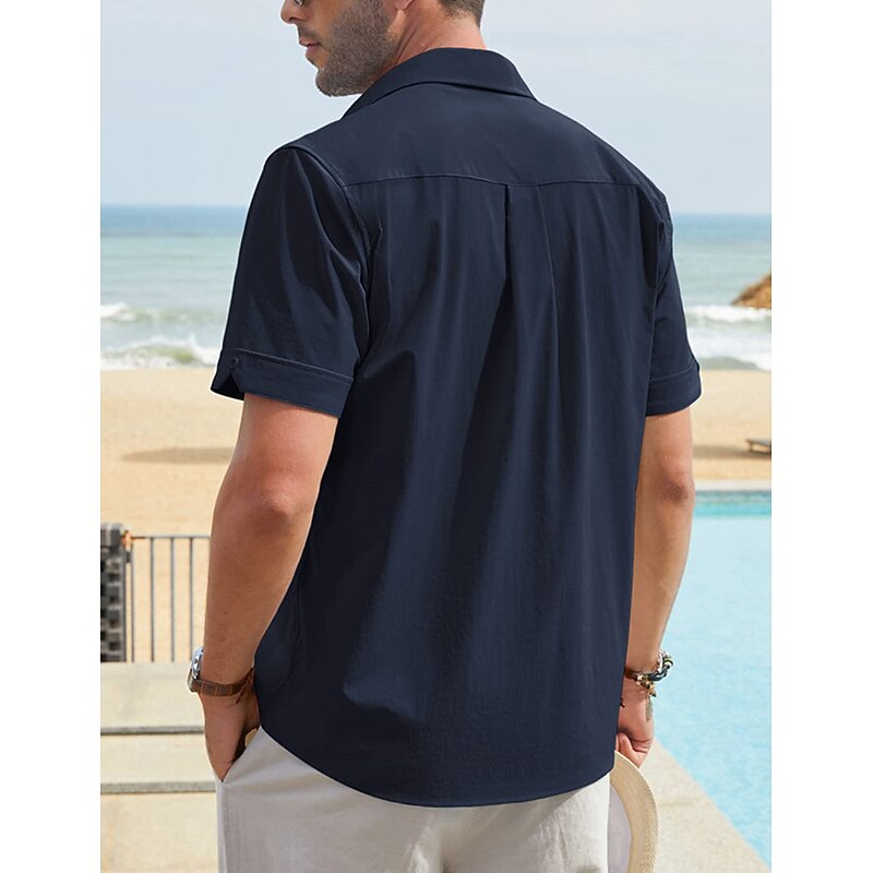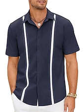 More information about Men's Shirt Linen Shirt Guayabera Shirt Summer Shirt Beach Shirt Button Up Shirt Color Block Vacation Casual Navy Blue Blue Khaki Short Sleeve Turndown Summer Clothing Apparel