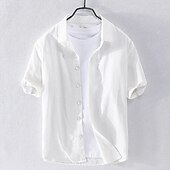 More information about Men's Linen Shirt Summer Shirt Beach Wear Button Up Shirt Plain Vacation Curise White Blue Gray Short Sleeve Turndown Summer Clothing Apparel