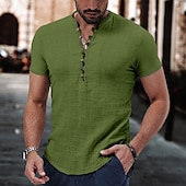 Why Choose Men's Linen Shirt Band Collar Shirt Popover Shirt Summer Shirt Beach Wear Casual Shirt Plain Vacation Casual Black White Pink Wine Short Sleeve V Neck Summer Clothing Apparel?