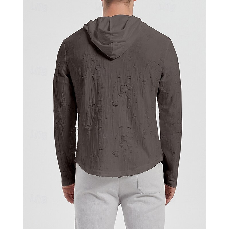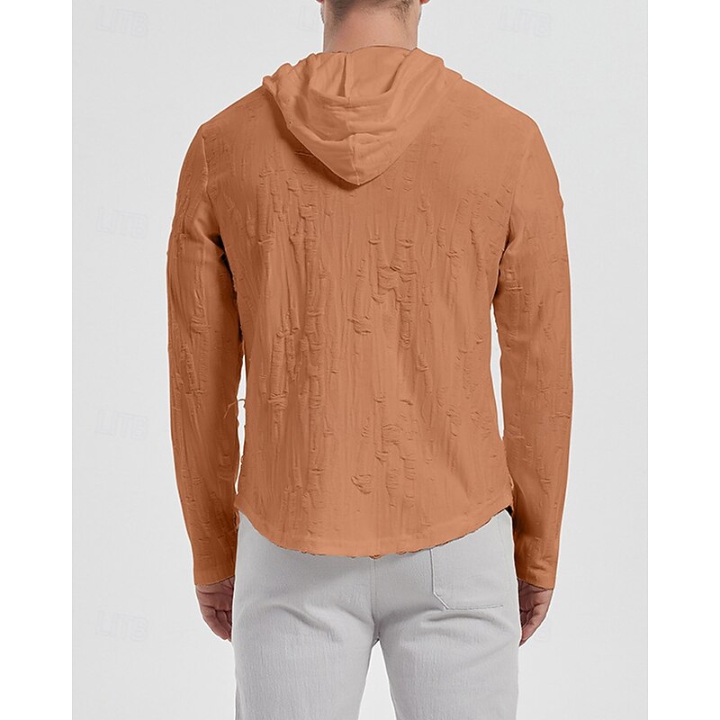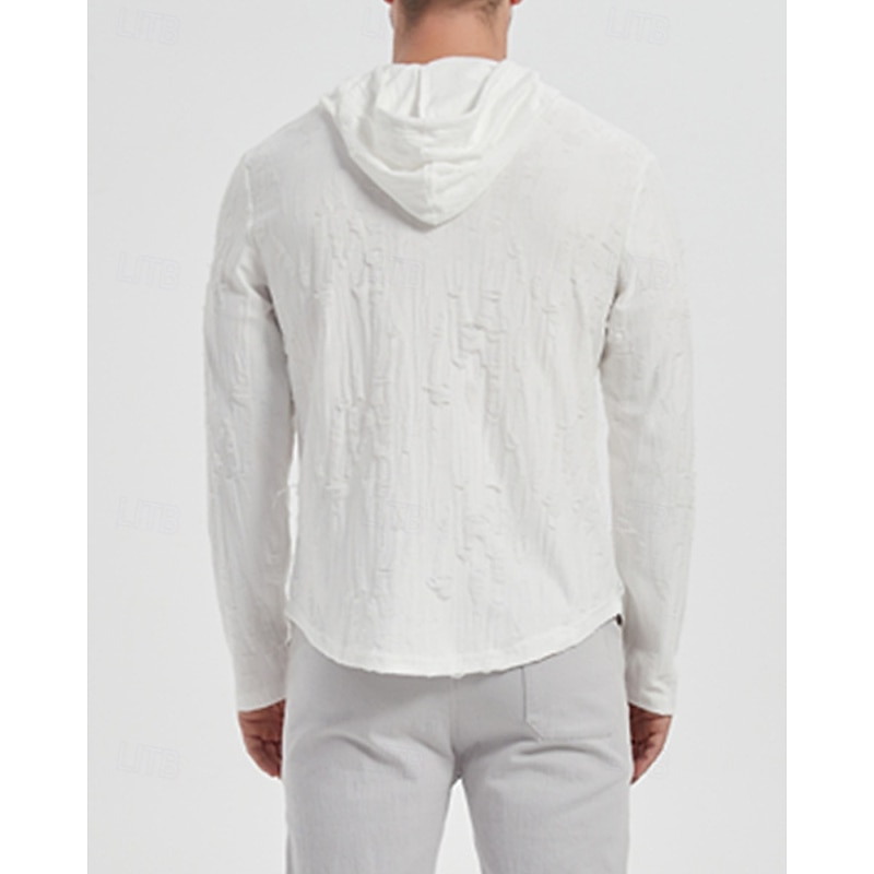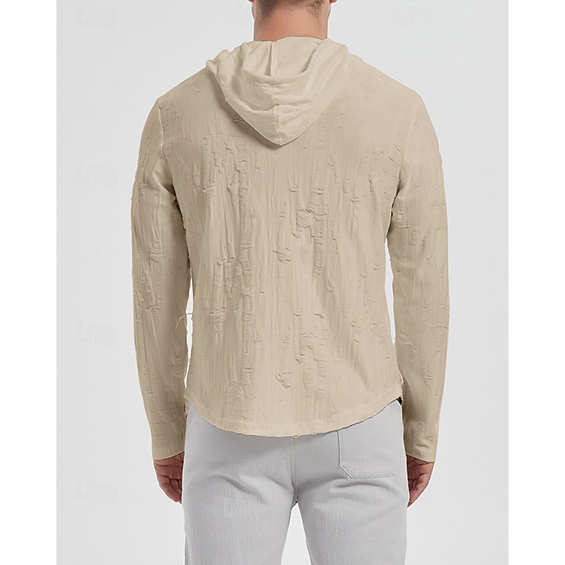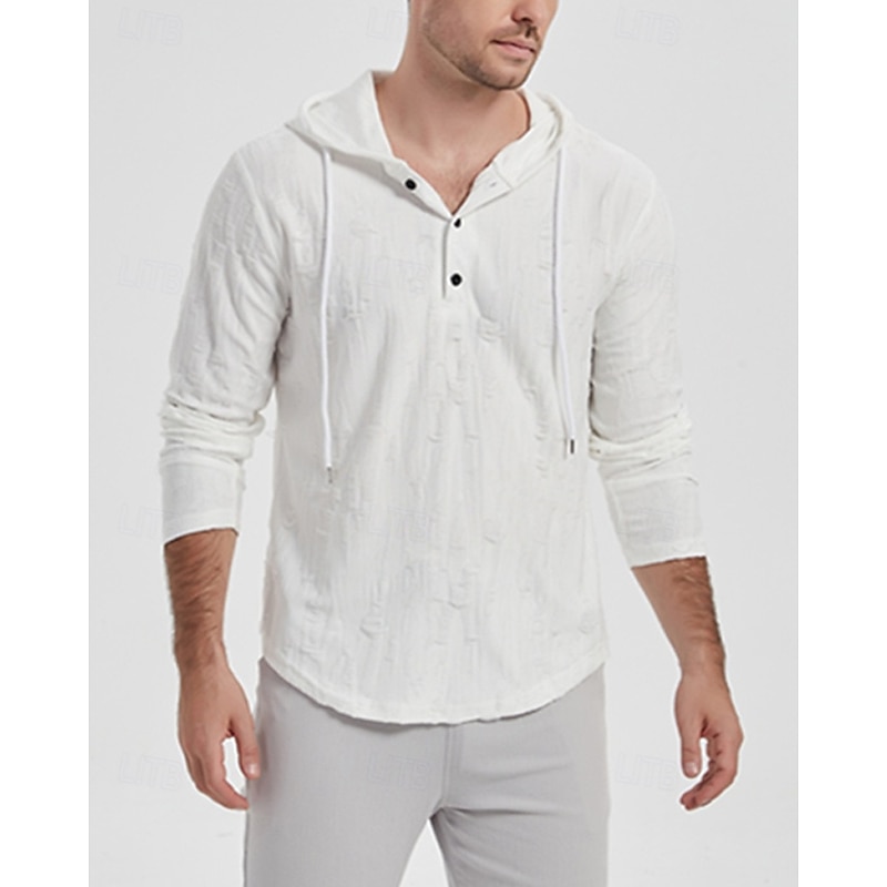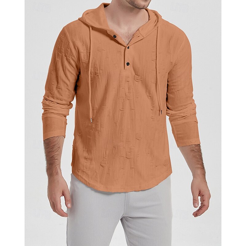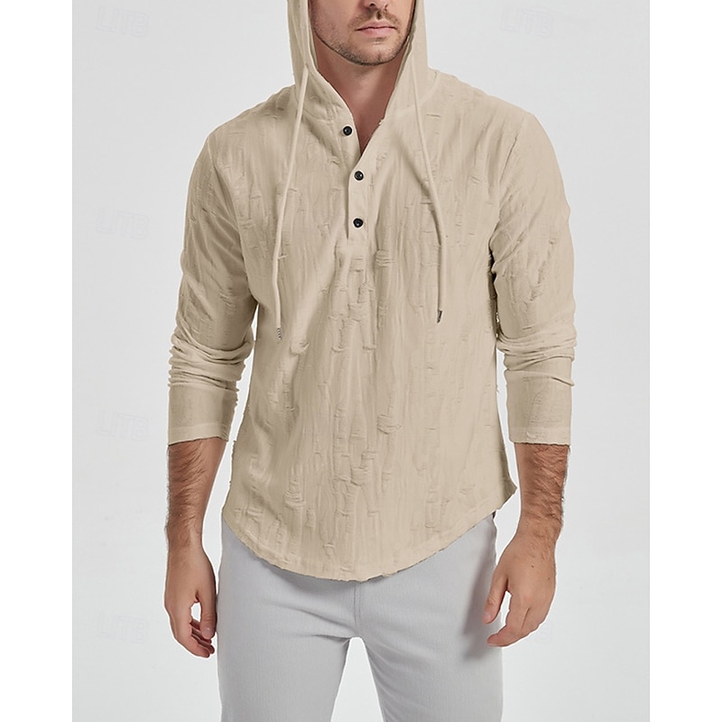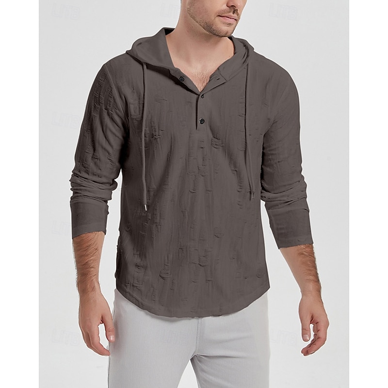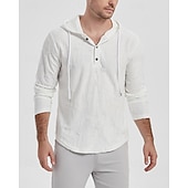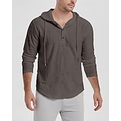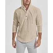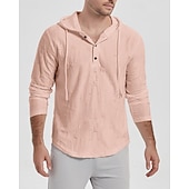 More information about Men's Shirt Popover Shirt Summer Shirt Casual Shirt Beach Shirt Black White Yellow Pink khaki Long Sleeve Plain Hooded Vacation Hawaiian Drawstring Clothing Apparel Polyester Fashion Casual