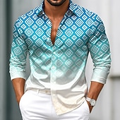 in-demand ! Men's Geometric Gradient Color Shirt Satin Shirt Dress Shirt Long Sleeve Vintage Retro Vacation Dailywear Summer Spring Fall Turndown 3D Print Button Up Shirts Blue Green