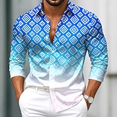 More information about Men's Geometric Gradient Color Shirt Satin Shirt Dress Shirt Long Sleeve Vintage Retro Vacation Dailywear Summer Spring Fall Turndown 3D Print Button Up Shirts Blue Green