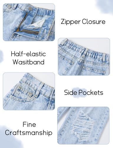 Happy Cherry Boys Girls Casual Baggy Wide Leg Jeans Elastic Waist Straight Pants Loose Denim Trousers