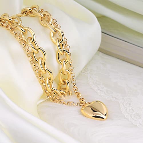 Chunky Gold Necklace Heart Pendant 14k Gold Plated Thick Chain Multilayer Necklace for Women