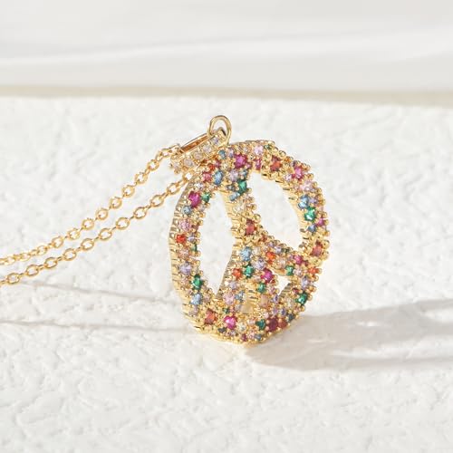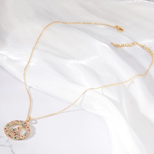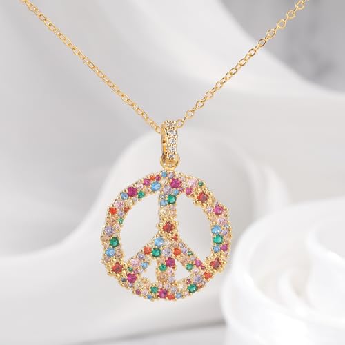 Colorful Peace Sign Pendant Women's 14K Gold Plated Cubic Zirconia cherish Peace Symbol Heart, Music Note, Adjustable Boho Hippie Necklace Gift