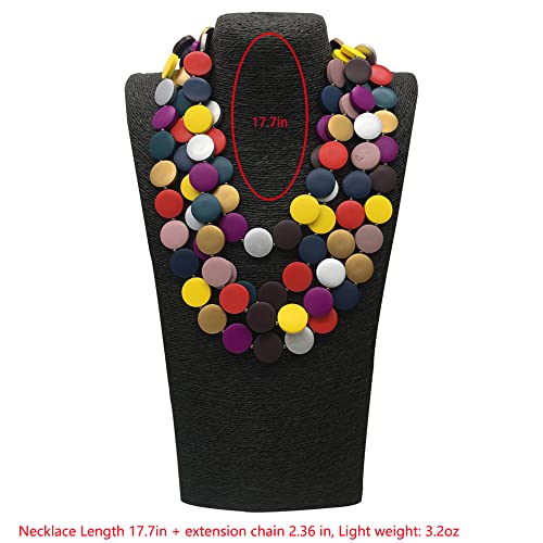 More information about Statement Multicolor Wood Bead Chunky Layered Necklace For Women Multi Layer Color Wooden Beaded Bib Long Strand African Necklace For Women Fashion Jewelry Costume (Multicolor)