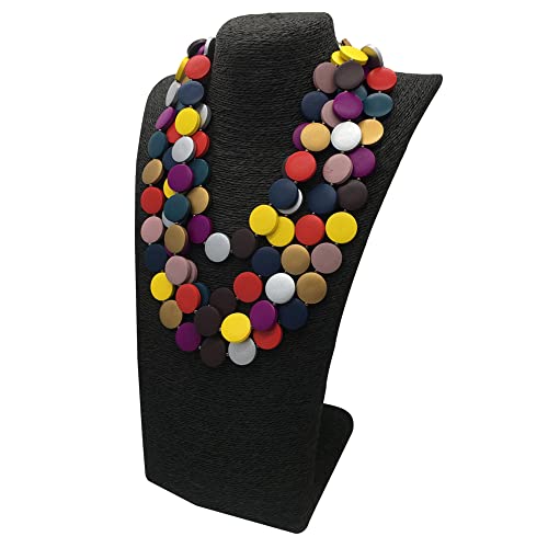 in-demand ! Statement Multicolor Wood Bead Chunky Layered Necklace For Women Multi Layer Color Wooden Beaded Bib Long Strand African Necklace For Women Fashion Jewelry Costume (Multicolor)