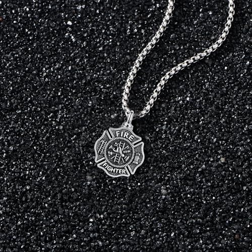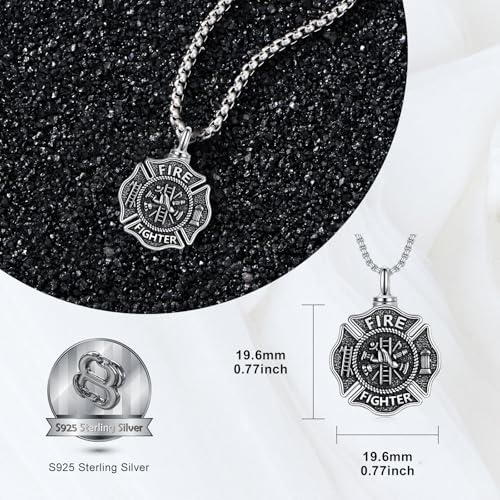 Father’s Day Gifts for Dad Firefighter Necklace 925 Sterling Silver Fire Dept Pendant Fire Department Jewelry for Women Men Christmas Birthday Gift