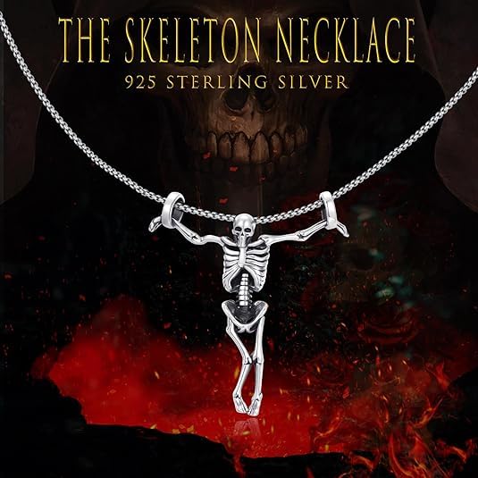 Material: Sterling SilverMetal type: Sterling SilverChain type: CableGem type: No GemstoneUnique Design: This sterling silver skull necklace adopts dark oxidized punk design, full of mystery and ancient atmosphere. Two chains lock the skull firmly, and the skull opens its arms to form a cross structure, which is very personal and artisticMaterial: This skeleton necklace is made of 925 sterling silver, carefully handmade to make every detail perfect, lead-free, nickel-free, long-term wearing will not harm your skin, and can be used with careSize Information: The length of this skull necklace pendant is 1.38*1.38 inches (the size is measured manually, there will be some errors), with a 24-inch adjustable chain, it is almost suitable for most people, and it is a good silver jewelry in any scene GiftBeautiful Packaging: Packaged in a elegant packaging box, skull jewelry for men, women, moms, wife, dad, husband, and friends, whether it's a birthday or a special day or a special occasion24-hour service: PCTJYFU place great importance on the shopping experience of our customers and it is our aim to serve them Perfect for everyday use. superior materials and excellent craftsmanship ensure long-lasting durability.