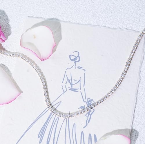 More information about 14K Gold Plated Women Tennis Necklace with CZ Gems and 13-18'' Adjustable Chain, Gift for Christmas, Baptism, Wedding, Birthday, Anniversary (Box Included)
