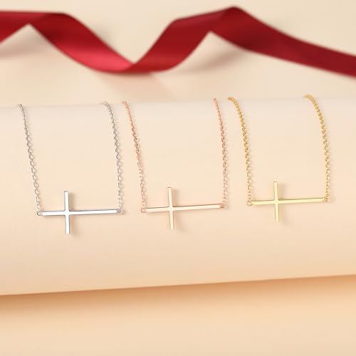 Item display length: 17 inchesMaterial: Sterling SilverMetal type: Sterling SilverClasp type: Spring RingChain type: LinkGem type: No GemstoneSHOW YOUR FAITH WITH A HORIZONTAL CROSS NECKLACE made of 925 Sterling Silver, hypoallergenic and made to last a lifetime. Feel empowered for top performance all day long, with a stunning sideway cross!MAKE YOUR FASHION STATEMENT: The exquisite 0.55 x 1.15 inch polished side way cross hanging on the adjustable 16-18 inch chain makes this necklace by My Daily Styles a timeless piece, ideal for wearing all day long.COMPLEMENT YOUR CASUAL OR FORMAL OUTFIT: Set off to the office, the special event or the night out with a stylish, modern, minimalist Sterling Silver crossways cross necklace for women. Underline your style!SPOIL A LOVED LADY: Luxuriously packaged, our sideway cross necklace for ladies makes an excellent gift for a loved woman. Offer a special birthday, Valentine’s, Mother's Day, Christmas or graduation gift!ORDER THIS DELUXE CROSS NECKLACE WITH CONFIDENCE: If you are not completely satisfied with our horizontal cross necklace for women, we will provide a quick replacement or work to make it right. Your satisfaction is our priority, and we want your experience to be exceptional. Perfect for everyday use. High quality materials and excellent craftsmanship ensure long-lasting durability.