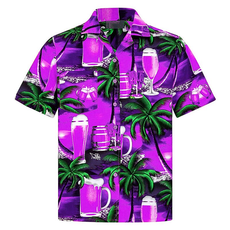 More information about Men's Coconut Tree Graphic Prints Beer Shirt Summer Hawaiian Shirt Aloha Shirt Short Sleeve Tropical Fashion Hawaiian Casual Hawaiian Holiday Summer Spring Turndown Print Button-Down Yellow Pink