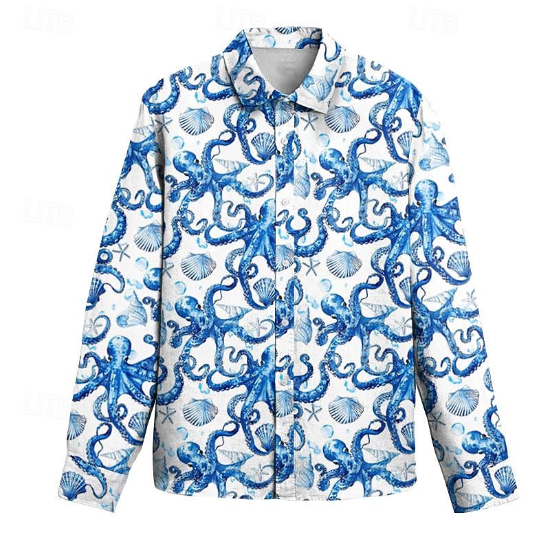 Why Choose Men's Tropical Octopus Turtle Summer Hawaiian Shirt Aloha Shirt Printed Shirts Long Sleeve Shirt Turndown Hawaiian Resort Vacation Going out Beach Blue Dark Blue S M L?