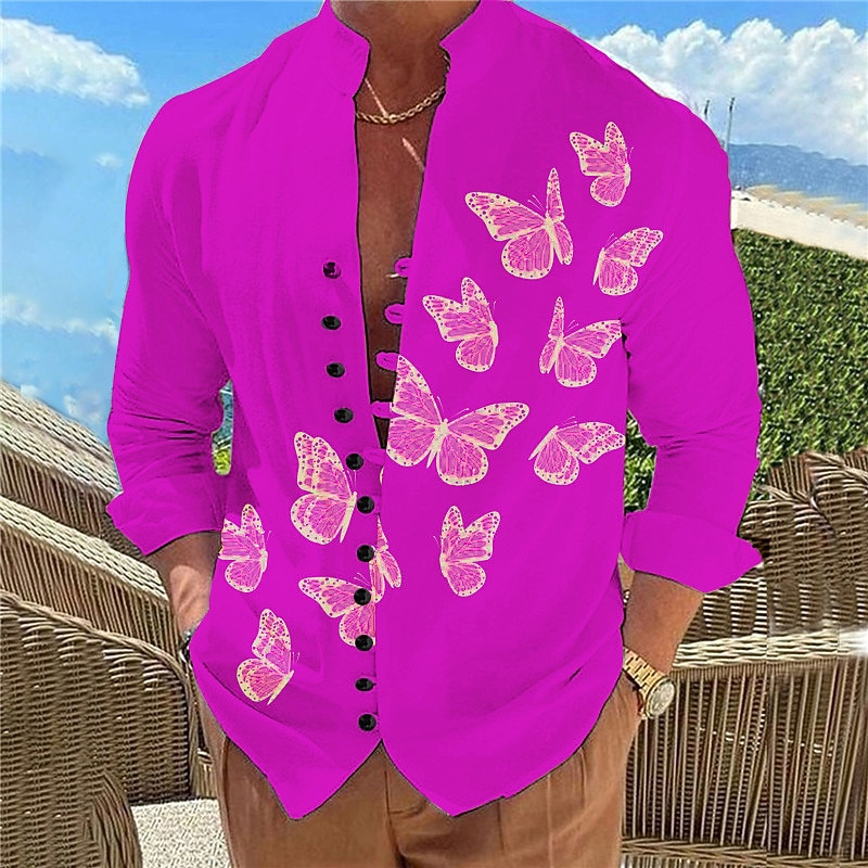 Highlights - Sleeve Length: Long sleeve for added comfort and coverage. - Gender: Specifically designed for men. - Tops Type: Linen shirt, which is known for its breathability and durability. - Pattern: Features an elegant butterfly print for a one-of-a-kind and chic look. - Design: Printed design for a trendy and fashionable appearance.