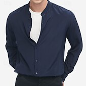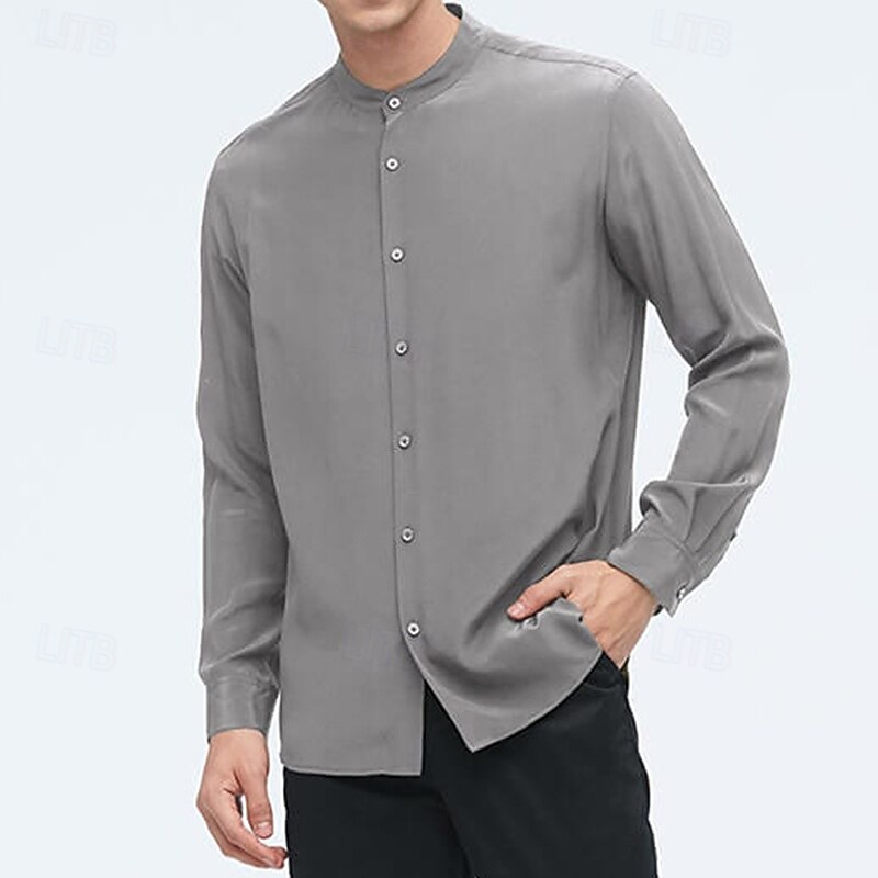 More information about Men's Shirt Band Collar Shirt Satin Shirt Dress Shirt Casual Shirt Plain Formal Streetwear Black Navy Blue Gray Long Sleeve Mandarin Collar every Seasons Clothing Apparel