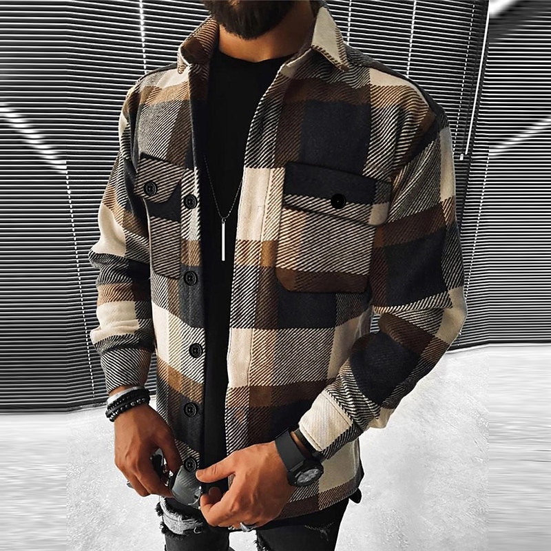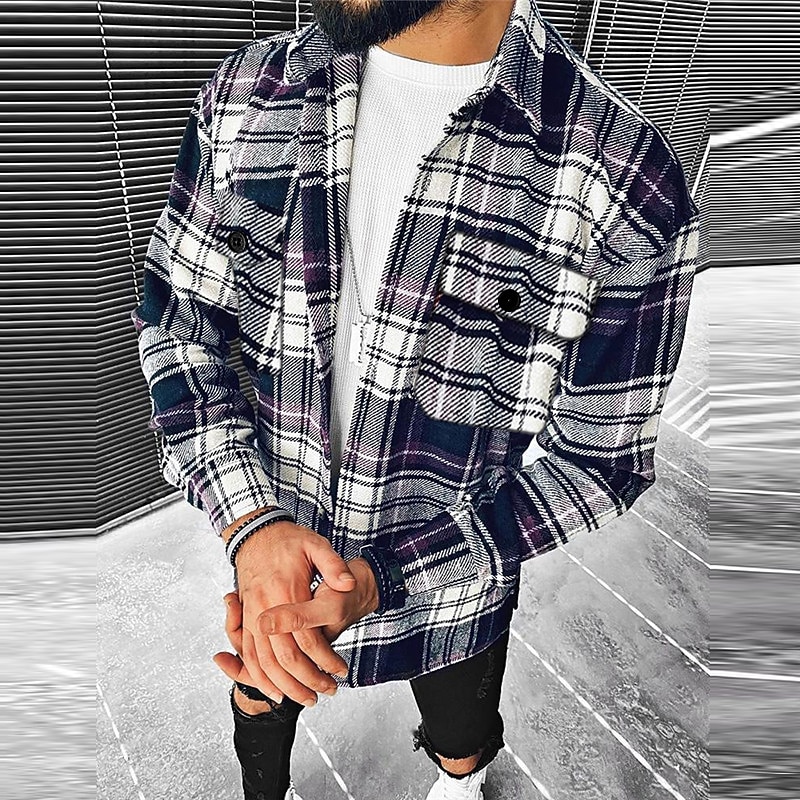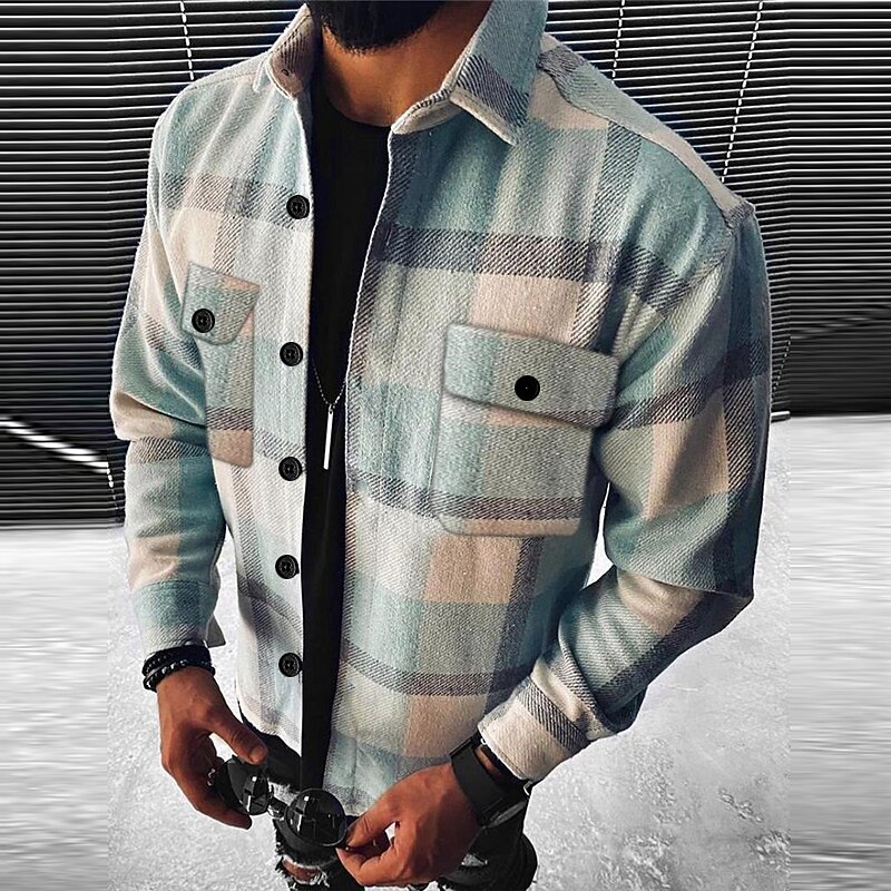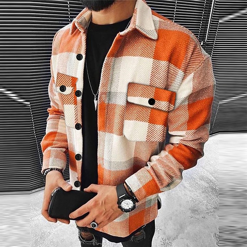 This Men's Plaid Geometric Pattern Shirt Jacket Overshirt Long Sleeve Fashion Going out Weekend Fall & Winter Turndown Print Pink Blue Sky Blue Vivid Pink Orange combines elegant design with practical functionality. Every detail has been carefully considered to ensure you get the best possible experience. The magnificent construction means this product will serve you well for years to come.