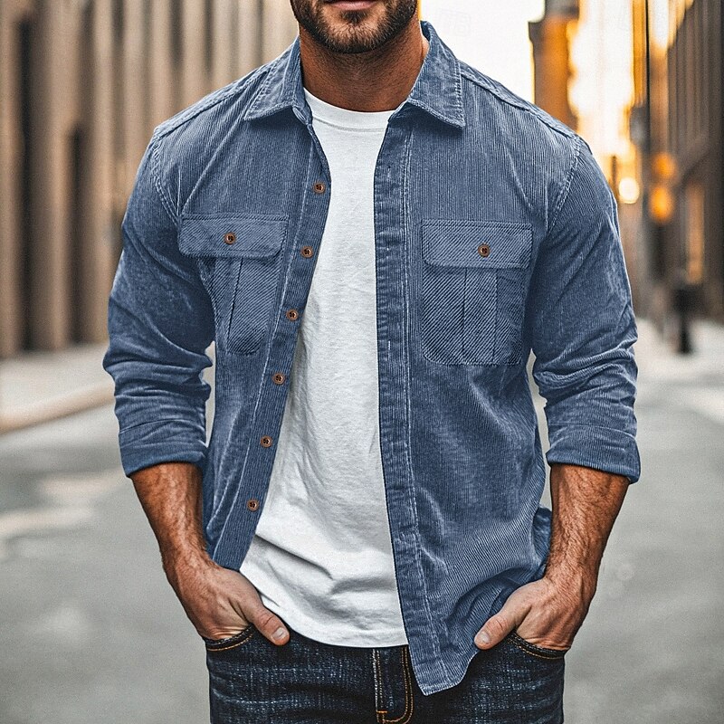 More information about Men's Casual Shirt Corduroy Shirt Button Up Shirt Solid Color Street Daily Blue Brown Gray Long Sleeve Lapel Spring & Fall Clothing Apparel Pocket
