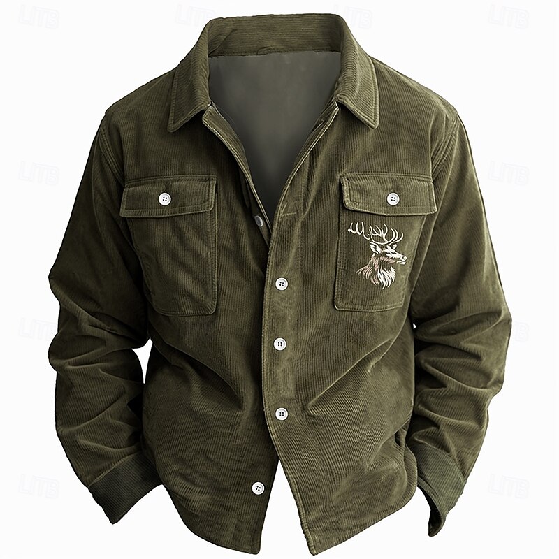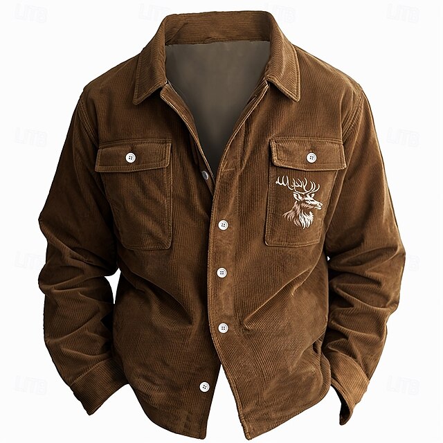 More information about Men's Elk Shirt Jacket Overshirt Long Sleeve Vintage Tribal Dailywear Fall & Winter Collared Shirts Button Up 3D Print 2 Pockets 1pc Army Green Navy Blue Brown