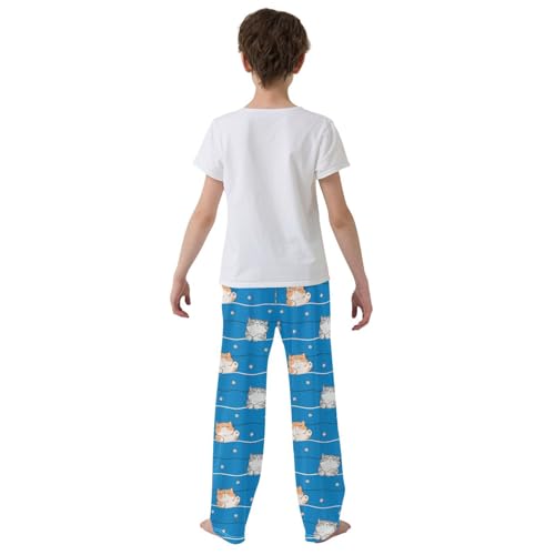Boys' Pants Cartoon Cat Sleep Long Bottoms Jogger Pants Elastic Waist Trousers with Pockets S-XL
