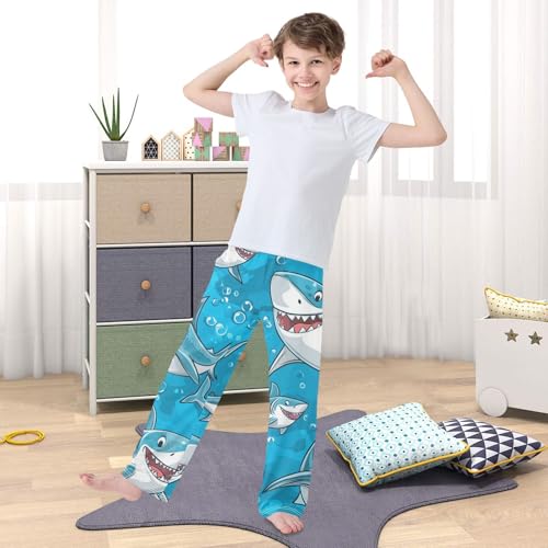 Lovely Sharks Boys Long Pants gentle Trousers Elastic Waist Kids Lounge Bottoms with Pockets S-XL