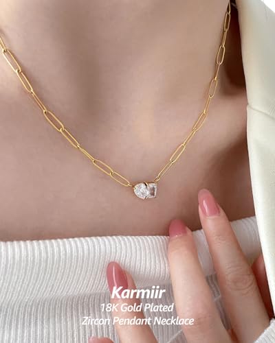Women's Necklace 18K Gold Plated Paperclip Chain with Square & Teardrop Zircon Gemstones Pendant, 15.7"+2" Adjustable Elegant & Sweet Dainty Jewelry for Everyday Wear